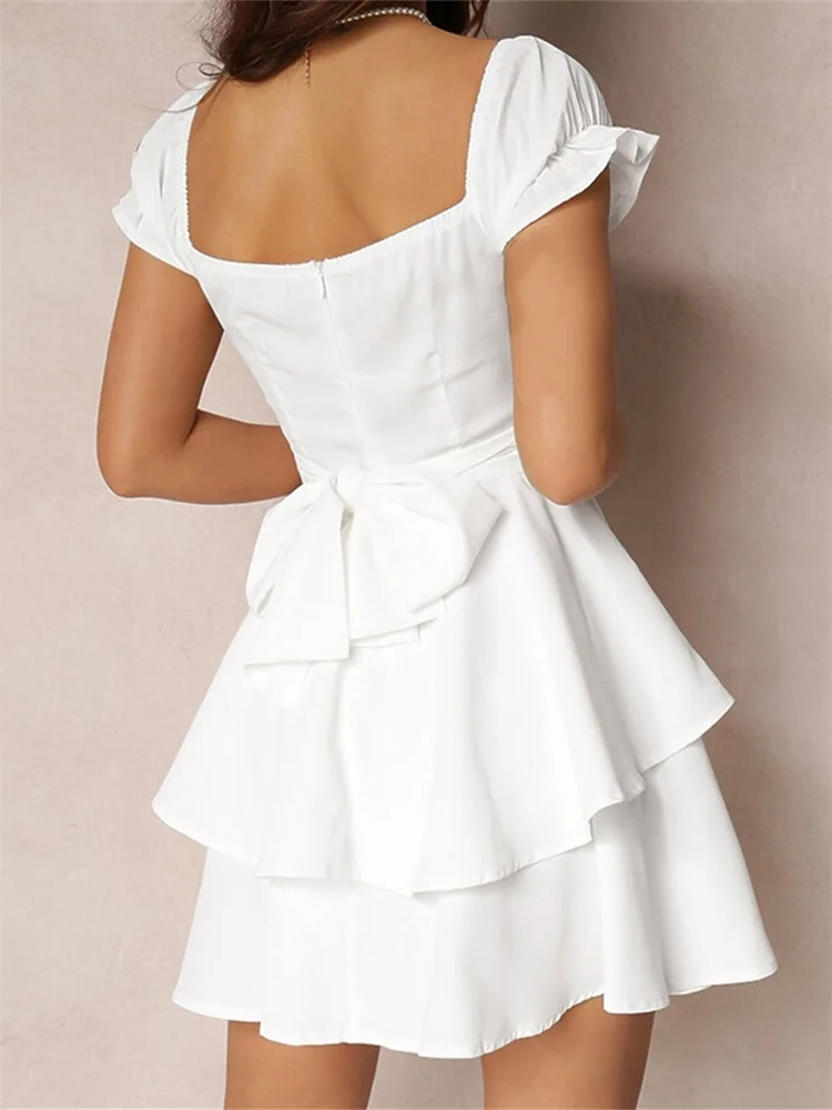 Women’s Mini A-Line Dress Solid Color Ruffled Sleeves Square Neck Layered Hem Dress